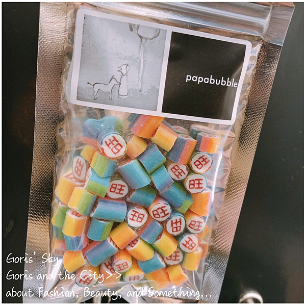 因為當時人都很多,我不太好拉遠拍,不然又要馬賽克,畫面也不好看,所以我都抓進拍,這PAPABUBBLE西班牙手工糖果現場陳列的商品不多,大多是這樣一包一包的,商品就是這些為主,全都是承包的PAPABUBBLE西班牙手工糖果。
