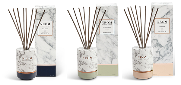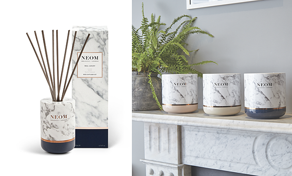 像是這一次,NEOM就針對既有,同時也很擅長的香氛蠟燭,以及室內擴香,做了全新的質感設計,採用紮紮實實的大理石材質,然後搭配色雕,以及美麗的大理石紋路,再佐以NEOM一直以來所強調的道德採購以確保植物可以永續採收、全英國製造,100%純天然植物蠟與植物精油、無人工香料、石蠟、礦物油灌入香氛蠟燭,以及這一次的室內擴香中,讓整個香氛蠟燭、室內擴香,單從大理石的外觀,然後療癒的香氣,真的是擺在家裡,無論是客廳、房間,甚至是你如果有開店,都是一整個質感爆棚、很加分!