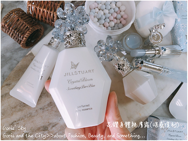 JILL STUART目前最經典,同時仍然繼續在延伸發展的花鑽香水,從同名、輕舞粉雪、夢幻金漾、幻漾霓光,然後到這次的湛藍祝福,已經來到了共5款,發展的歷史宛如一個小女孩,長大成人,然後一直到湛藍祝福的這一次,終於披上婚紗,準備走在紅毯的那一天,那個味道,真的是有脈絡的在成長、在演化,這次花鑽香水(湛藍祝福),在白紗中的Something Blue中,有著三朵美麗的藍色水晶花束,點綴著淺藍色的施華洛世奇水鑽,宛如是一種夢幻的新娘婚紗!香氛從果香切入前味,用著活潑、生動的梨子、蘋果、柑橘等 ...演繹出一種即將邁向幸福的衝動和激動甚至是興奮!