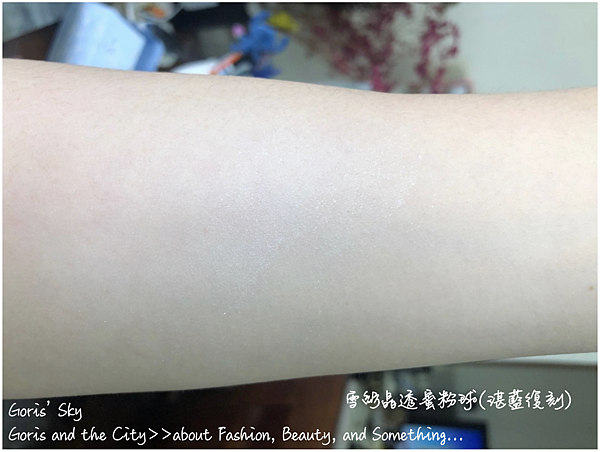 其粉撲非常大非常柔軟,除了可以刷於臉上創造晶透、晶瑩感,也可以刷在身體,像是鎖骨、手臂,甚至是小腿做隱形絲襪般的光澤感。