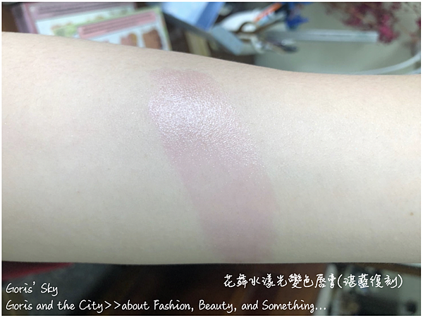 這也是Someting Blue下,從唇膏外殼,都很Someting Blue,然後還有明顯的施華洛世奇藍色水晶,同時唇膏蓋也能打開成為小鏡子,轉出來,一整個像是冰晶藍般的唇膏本體,你會以為擦起來就是BABY BLUE的淺藍色唇膏?但完全不然,接觸雙唇就會隨著你的唇溫、唇色,變色成專屬你的粉嫩裸唇感,然後很保濕潤澤的基本上,你就把這花舞水漾光變色唇膏(湛藍復刻)當作護唇膏就很ok!