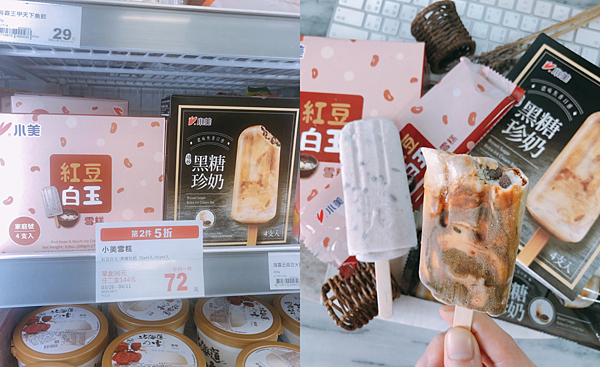 前兩天朋友傳來說全聯看到這小美冰淇淋的小美黑糖珍奶雪糕,跟我說這好便宜,而且他買回家試吃覺得超級好吃的大推,叫我快去買來寫~我真的一看到完全被打中般的立馬衝全聯,第一家沒看到,第二家沒看到,第三家才終於被我看到冰箱裡唯一的一盒,立馬趕快拿在手上,就怕被人搶走的有夠好笑,看到旁邊還擺滿同樣是小美冰淇淋的紅豆白玉雪糕,心想反正兩盒有特價,加上黑糖珍奶也只剩一盒,紅豆也不會難吃到哪裡去,就湊了兩盒一起結帳、一起買來吃這樣!