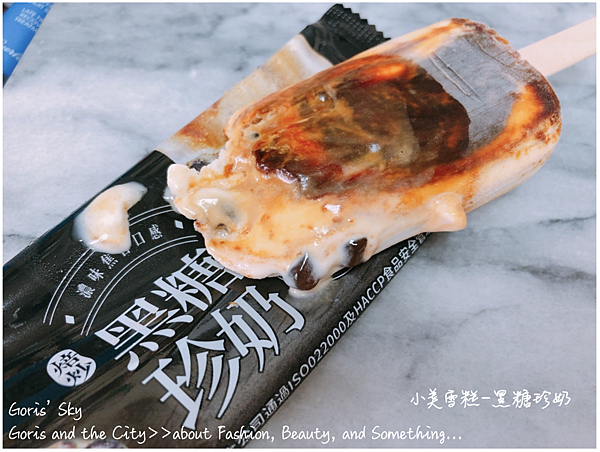 其做成雪糕的質地,吃起來不會有很冰棒的感覺,反而像是在吃冰淇淋的綿密口感,加上那如渲染般的黑糖拉花感,伴隨著整個奶茶質地,一吃就真的很像再喝黑糖珍奶,只是變成冰淇淋雪糕的口感,最厲害的是那雪糕裡的珍珠,吃起來完全是Q的,不會死硬,特別是隨著你嘴裡的溫度稍微熱感後,都能咬得到那QQ的Q彈感,這真蠻厲害,同時,你整個咬了一口,直接的吃,就像是吃黑糖珍奶冰淇淋沒錯,但如果含在嘴裡,讓其慢慢融化成液體,就真的變成喝的黑糖珍奶了!