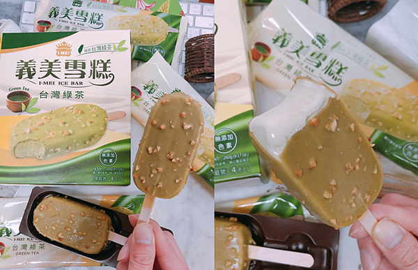 所以~請你不要太期待這義美雪糕-台灣綠茶很綠,其實也沒那麼綠茶,真的比較像是綠奶茶的概念,但味道倒是比起我們過去大多在吃的抹茶冰淇淋來說,少了抹茶那種苦澀感,簡單來說,就是比較台味啦、台灣味,少了苦澀,同時又有奶,自然也就比你我所理解的抹茶,會再甜一點,特別是我真的碰過朋友就是很不愛抹茶,完全不碰抹茶的,但他就是能喝綠茶,也是有點特別。