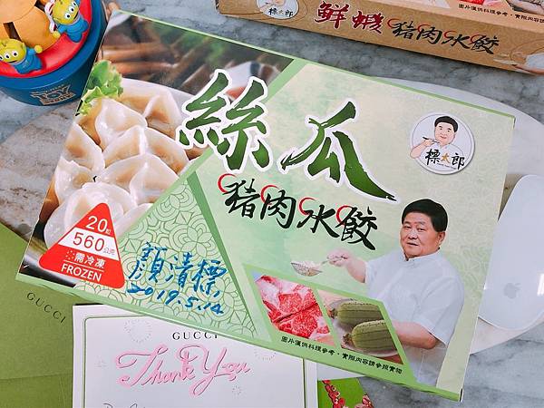 這是絲瓜豬肉水餃,因為就是另一個口味,我想說都要吃到,就一盒買它,強調一顆裡面包著新鮮絲瓜的豬肉內餡,一共20顆,一樣一盒賣200元。