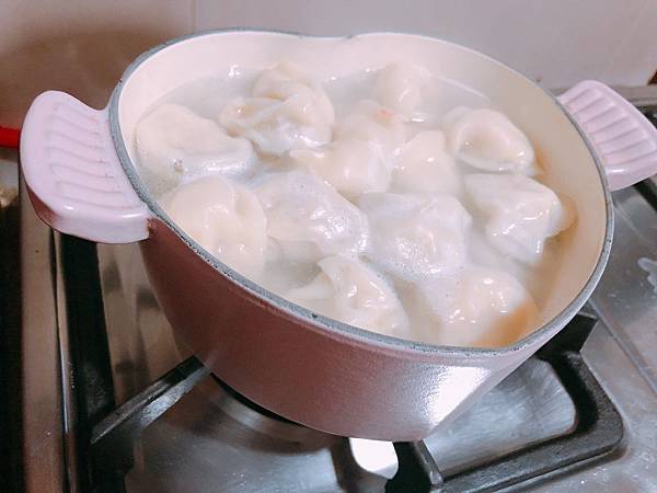 煮的時候,店員一直強調要煮6分鐘以上,心想我有看起來那麼不會做飯嗎?我當然知道要煮久一點啦,不然裡面的冷凍內餡會熟不了啦!哈哈,而且我還知道煮水餃時,水滾了,要加一點冷水,讓它先平靜一點,然後再滾到沸騰,同時再加一次冷水,大概這樣反覆三次,差不多水餃就會熟啦!