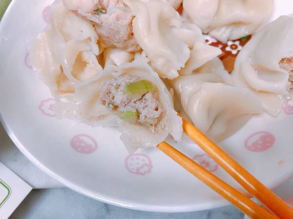 而實體的水餃上,也真的是比起本來的又更大顆了些,看起來也包的更實在、更豐富了點,一整個還沒下水,就有夠飽滿的。