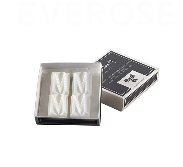搭配 Mathilde M.香蠟電熱器的使用,則是 Mathilde M.本身有這樣的香精香蠟膏, 一盒一共 4 塊,這樣 380 元,每一次使用以一塊為原則,將 Mathilde M.香蠟電 熱器插上後,打開電源開關,整個會開始熱後,透過熱就能融化上頭的香精香蠟 膏,進而釋放香氣,然後充滿整整個居家空間,一共 13 種純淨自然的味道,你 可以隨你喜歡去放置,然後讓它融化,我覺得比較特別療癒的是,這每一盒的香 精香蠟膏都是純手工製作而成,每一款味道都有獨特的立體圖案,從小鳥、蝴蝶、 天使、愛心、緞帶、玫瑰花等.....,可以說是非常多樣,也很立體、法式般的質 感有溫度,也是相當 Mathilde M.的一種概念。