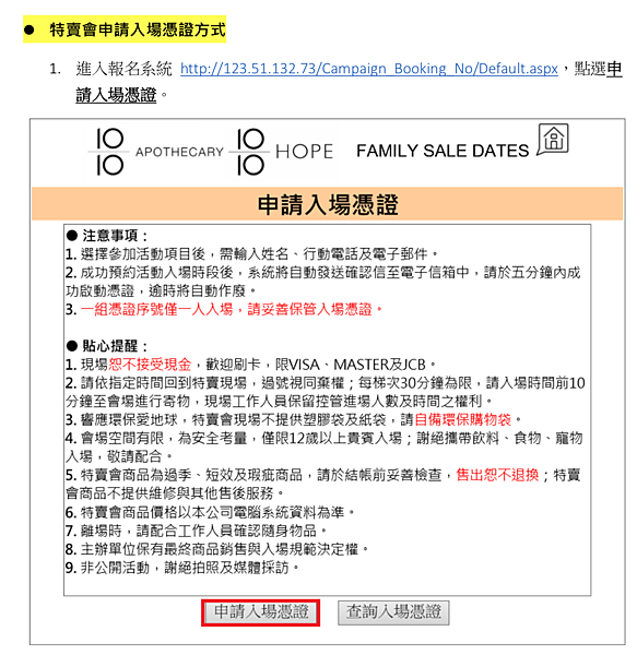 特賣會報名網址: http://123.51.132.73/Campaign_Booking_No/