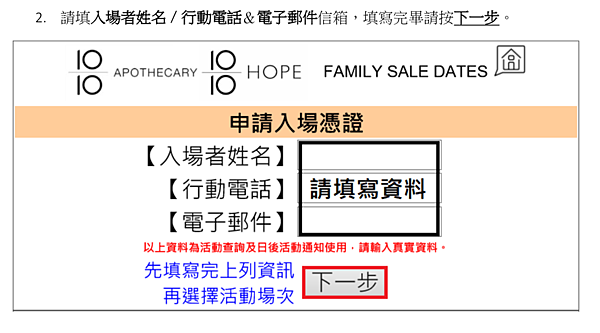 1. 選擇參加活動項目後,需輸入姓名、行動電話及電子郵件。