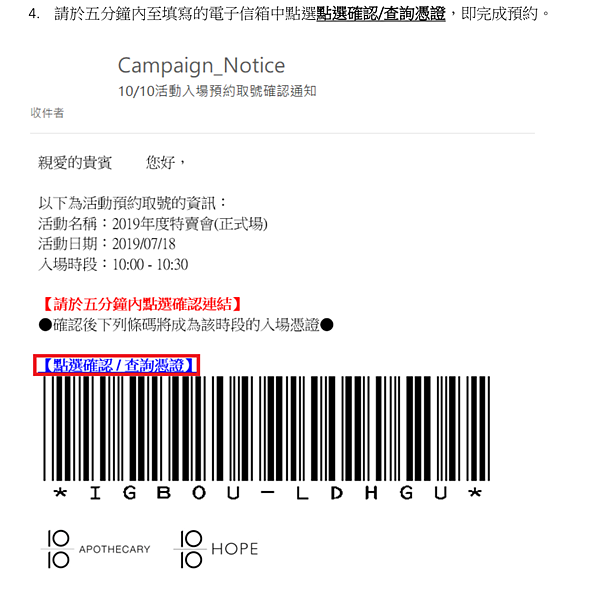 2. 成功預約活動入場時段後,系統將自動發送確認信至電子信箱中,請於五分鐘內成功啟動憑證,逾時將自動作廢。