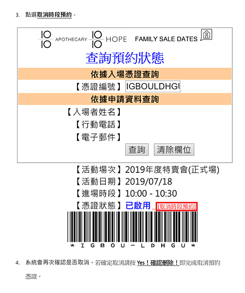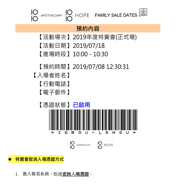 而這次,一大讓我超傻眼的創新,就是過往每逢1010特賣會現場都超級排,人超多,亂哄哄,大家都在吵鬧的經驗下,特別是現在7月每天都破35度,真的是越排火氣越大!這次1010非常無敵,也是美妝史上第一次,採線上登記搶時段!雖然說特賣會日期在7/18-7/19兩天,但這一次,你完全不用早起去排隊了,線上開放場次預約登記為7/13早上9點,沒錯,就是本週六,完全沒有要放過你的休假第一天一早就要起床就位,登入系統後,你可以選擇你要的時段,輸入相關資料後,你就可以得到一個條碼,然後屆時直接憑手機截圖之類,於你預約的時段掃條碼進場即可,完全不用在於特賣會當天傻乎乎的排隊啦,時間到,直接前往即可。