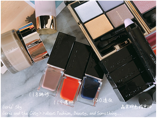 而這次搭配限定秋妝的的指尖色彩,三款晶采妍色指甲油都是比較秋日靜謐的優雅感,實用洗練的118純砂,很輕鬆的氣質呈現,119濃柿則宛如秋熟般的柿子,120透液則是水潤灑脫的清透海藍色。