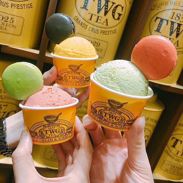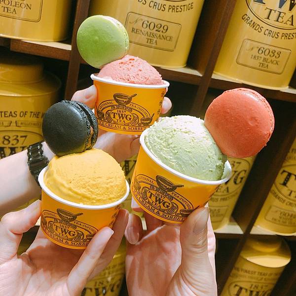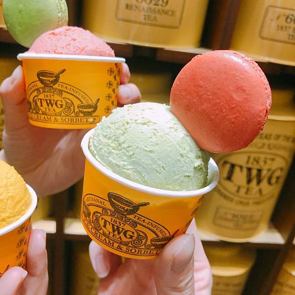 以茶葉、茗茶聞名的TWG TEA不再只是品茶,或是享用甜點、享用餐點了,而是正式大舉進軍夏季冰淇淋市場,全台第一間,更是全球首間的TWG TEA茶香冰淇淋體驗店就在今天8/1開始,只有6天正式於台北忠孝SOGO 1F廣場限時登場,而且本來以為TWG TEA的茶葉動不動一瓶就是1100元起跳(但我自己好愛喔,我目前自己家裡有在喝的就有五罐,真的是很好喝),TWG的冰淇淋少說可能都要200元起跳?結果完全不然!100有找,還找你5元,而且更是首度破天荒的買冰淇淋直接送你TWG TEA本身也相當知名的茶香馬可龍一顆!你沒看錯,就是上面那顆茶香馬卡龍完全免費、完全就是讓你邊吃冰淇淋可以邊吃,我必須說,很多人的都說馬卡龍很甜很難吃,但你真的吃過好吃的馬卡龍後會完全改觀,我心目中最好吃的馬卡龍像是Pierre Herme,這我每次去日本幾乎都會去青山吃,然後就是之前台灣也有的LADUREE也是很好吃,而TWG TEA自己以茶香為特色製成的馬卡龍我也覺得很好吃,現在台灣也就只有TWG TEA的馬卡龍在台灣買得到,所以現在在台灣我會吃的馬卡龍目前也就只有TWG TEA,而這次買TWG TEA茶香冰淇淋就直接送一顆同樣價值近百元的TWG TEA馬卡龍,可以說幾乎買一送一的5折相當划算,就連TWG TEA的茶葉也限時推出任選三款,其中一款(價低者)免費送的買2送1的史上第一次的優惠活動。