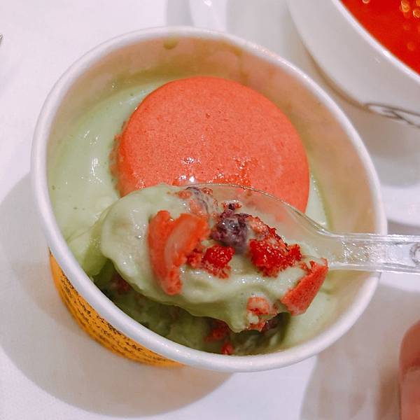 基本上單吃冰淇淋就蠻好吃,也因為是茶葉製茶的關係,比起大多的冰淇淋來說,也比較沒有那麼胖,同時也比較吃得完,然後沒那麼膩,搭配贈送的茶香馬卡龍,你可以分開吃,也可以馬卡龍拌著冰淇淋吃都很好吃!