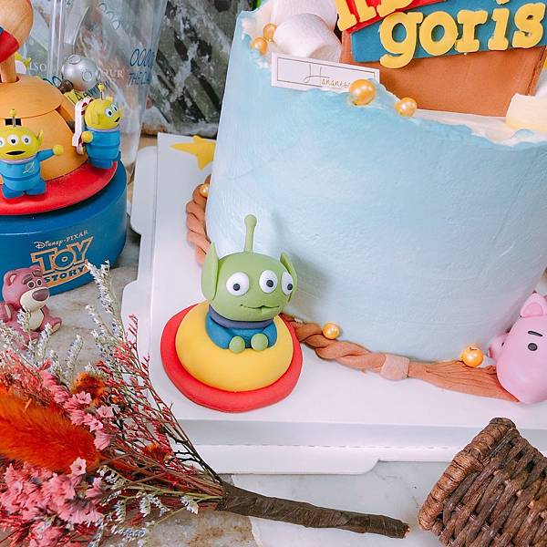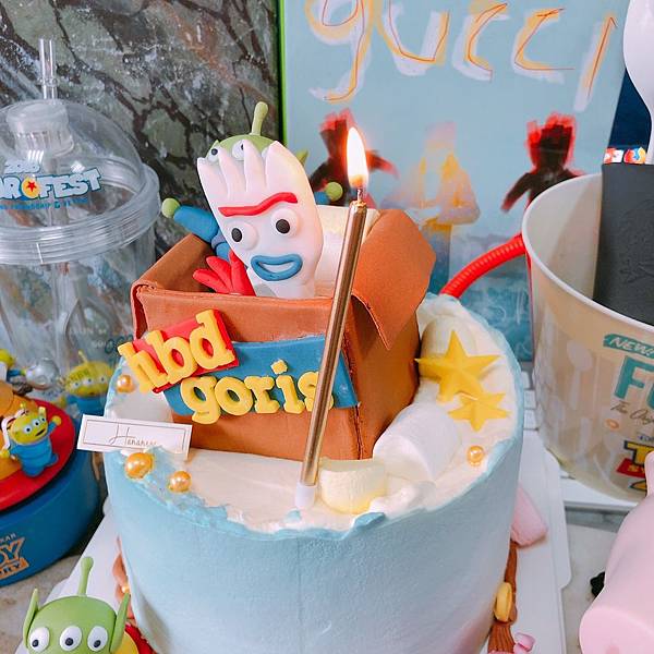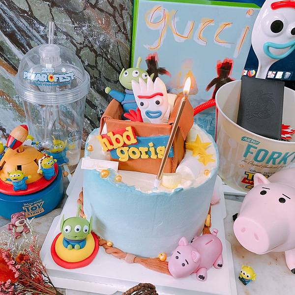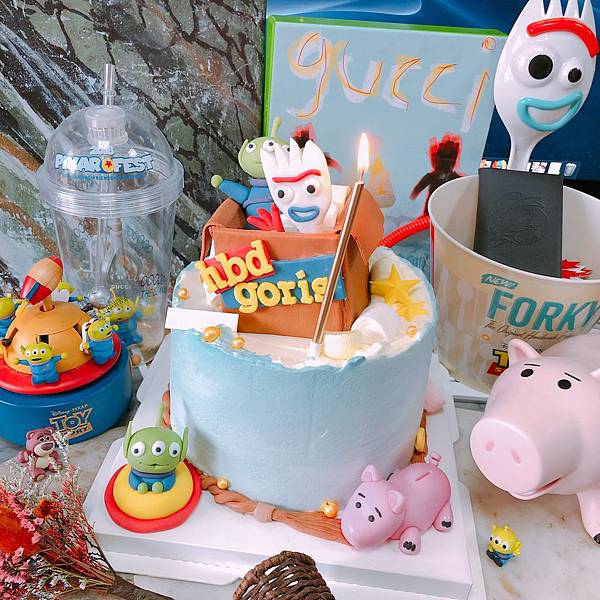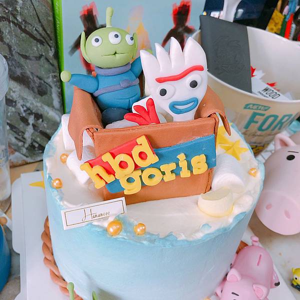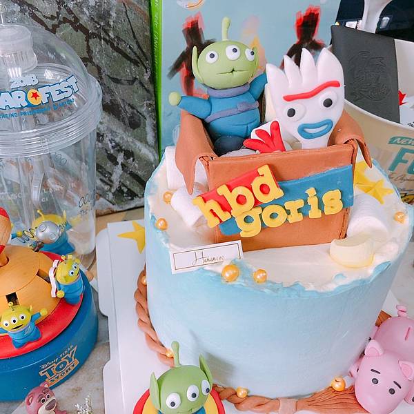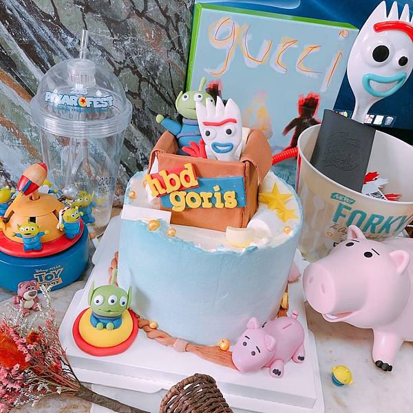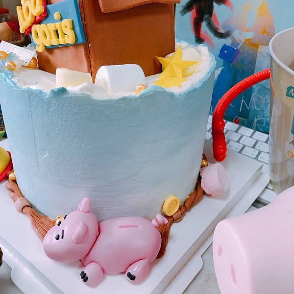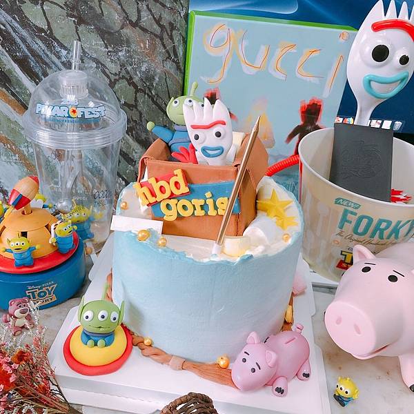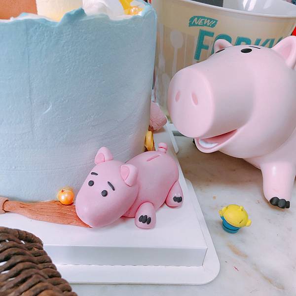 好感人喔,就像CreamTea的檸檬塔,我都幫他寫好幾篇了,我自己訂也還是要等半年,真的是真朋友耶他!但我就又很賤的回他:唷,生意好好,哈哈哈哈,都不用被公司摧殘了,發大財了!(但其實我還是很替他高興,說真的,這種做蛋糕、做甜點的,看似網路夯店,其實賺的錢都有限,都是用勞力在換錢,其實真的很辛苦,但我很開心他現在專注在自己的夢想,然後忙得很開心),然後馬上指定我要來做玩具總動員的風格,而且還要有最新角色叉奇,才代表我一整個走得很前面!哈哈哈,順便一起指定了要做baby blue嬰兒藍的伯爵戚風,內餡還是甜的永遠可以,鹹的超不行的手工芋泥+布丁!