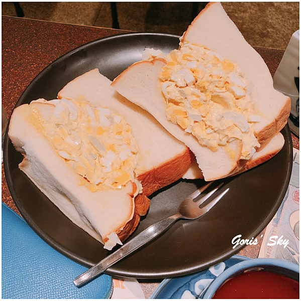 我點一個最多人點的雞蛋沙拉極厚三明治,一上菜你真的會傻眼,懷疑人生的是我剛剛點的是不是一人份嗎?但你沒看錯,這就是一人份!一人份的兩大份真心傻眼!哈哈哈哈哈哈