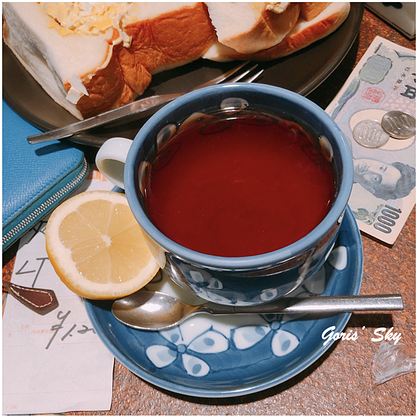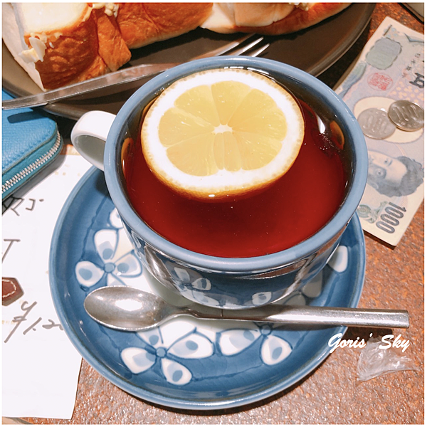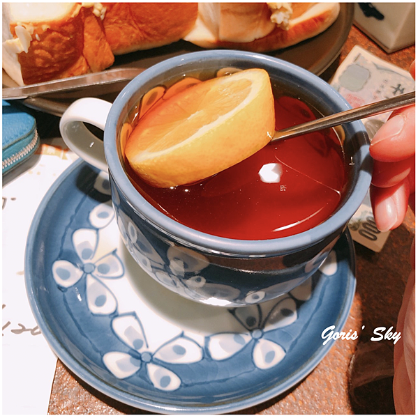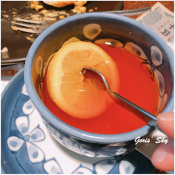 然後我還點了一杯熱檸檬茶搭配著喝,基本上紅茶和一片萊姆,店家其實都有附糖包那些、但我不加就沒特別用,而上來的檸檬茶,都會檸檬和紅茶分開,讓你想喝的時候,才將檸檬加入,不然過熱的紅茶泡太久檸檬,會容易苦。