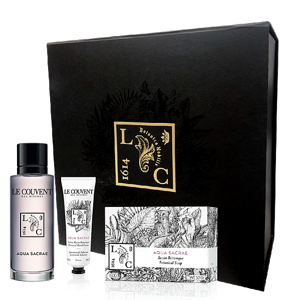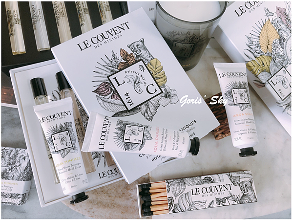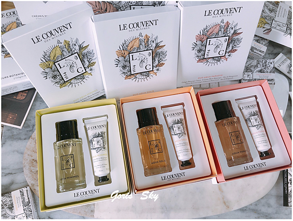 如果你香氛香水已經太多了,也不想買了,香氛以外也有這樣的純粹香氛保養的禮盒,像是護手霜禮盒,一次內含仙境之水、米尼姆之水、陽光之水三款護手霜,各30ml,Le Couvent des Minimes 洛蔻芳的護手霜在價格上也是相對可親許多,而且完全不會說只是在那邊單純用香氛、用心情好的普通喔,這你之前如果在歐舒丹時期用過的話,就會知道那花匠園藝護手霜帶有淡雅、療癒,同時部會過香的質地,擦在手上可以說很有一定柔潤度,保濕度、修護度的效果都相當不錯,算是好入手,但也真的好用,同時味道淡雅療癒的一款好用的護手霜,特耶是做成了禮盒組合,包裝也更漂亮了些,質感也更好,送禮自用都很ok。