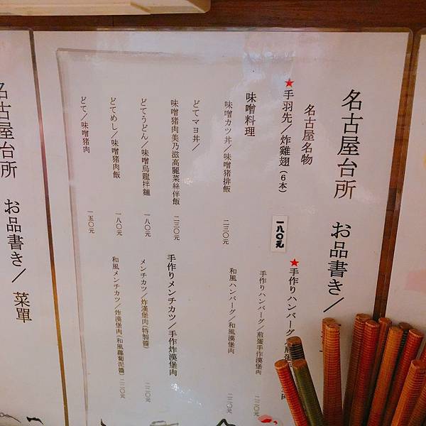這家名古屋台所基本上是以味噌料理著名,菜色不會很多,但就都是很日式的料理,繼格都很正常不會太高,但就因為你真的會什麼都想吃,一個人少說3、400左右,像是必吃的味噌漢堡排和炸雞翅(可以做半份),建議搭配這樣視為一個人套餐,因為都有夠好吃!其他像是味噌豬肉、焗烤美奶滋香菇、關東煮等...你可以視情況加點。