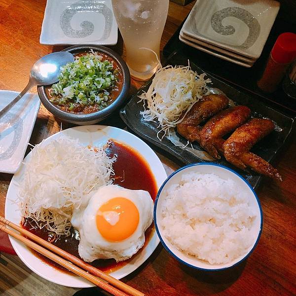 因為我太久沒去吃,一時想到一整個太懷念,我一個人就點了「煎蛋手作漢堡肉」、「炸雞翅」、「味噌豬肉」,如果當天還有關東煮或是焗烤美奶滋香菇,我應該也還會加點,因為真的都好好吃喔!