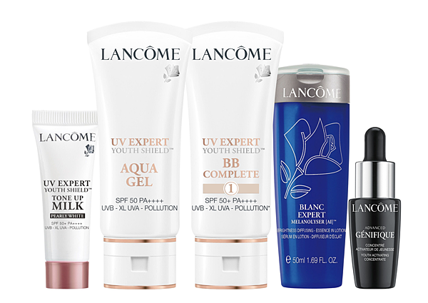 可以說是LANCOME最強的防曬隔離,除了有最受歡迎、最經典也最暢銷,極水感清爽的質地,人人可用,隨時可用的最百搭的超輕盈UV 水凝露 SPF50/PA++++做50ml的加大容量版外,包擴防曬同時提亮,肌膚是很自然地明亮感,並非死白的泛白,適合蠟黃、暗沉肌膚的超輕盈UV 提亮素顏霜 SPF50+ PA++++ 珍珠白,以及潤玫瑰粉色的超輕盈UV 提亮素顏霜 SPF50+ PA++++ 都有做50ml大容量的實惠版本,如果本來就很愛用LANCOME防曬隔離的話,建議直接就是攻大容量加大版會比較划算。