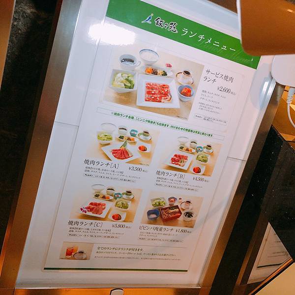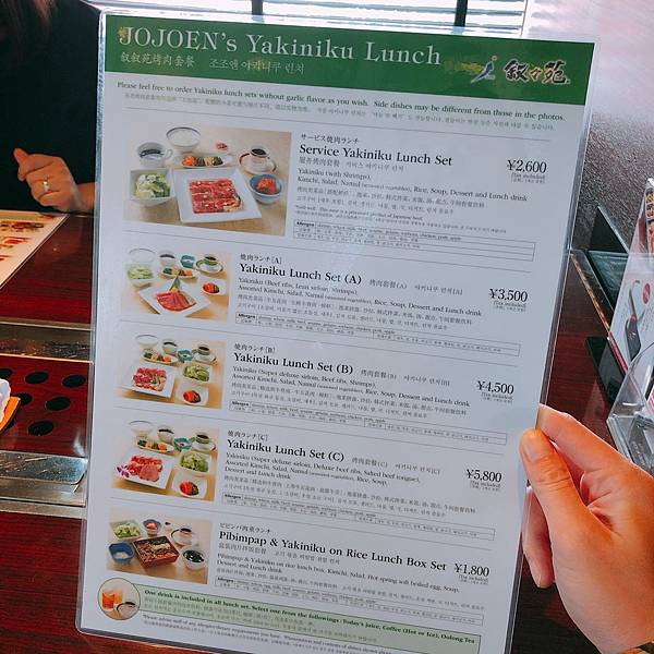 大概就五種套餐,1800日圓起,1800日圓的是盒裝肉片拌飯套餐,如果要烤肉的話,則至少是2600日圓起,然後根據肉的不同,有3500日圓、4500日圓、5800日圓不等的個人套餐。
