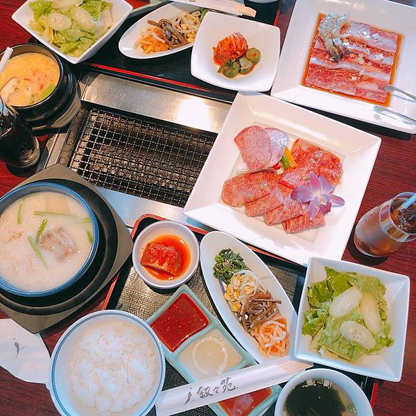 然後這是我們點的另一個5800日圓套餐,配菜、湯、飯等那些都一樣,就差在肉則是和牛脊肉、上等牛五花肉、牛舌等....折合台幣大概是1700元左右,但就能吃到比較高級的肉。