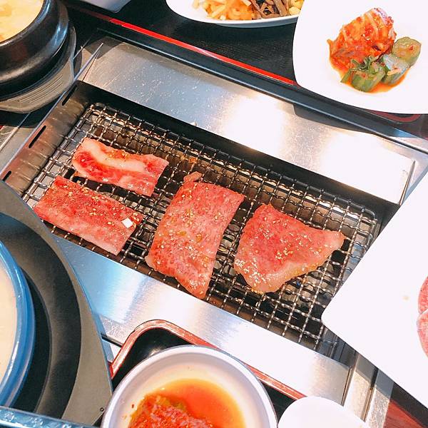 首先這是2600日圓的套餐,前面有說,都有載明這是「加入日本和牛五花肉」的「成型肉」,也就是我們說的「重組肉」,然透奧餐裡還有四種小菜、沙拉、泡菜、湯、飯,完整的燒肉醬,以及甜點,說真的這樣2600日圓,折合台幣大概750元,在日本我覺得很ok耶!
