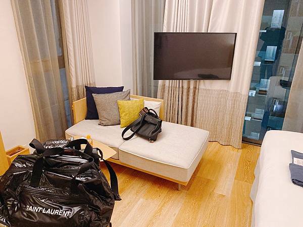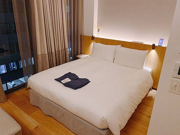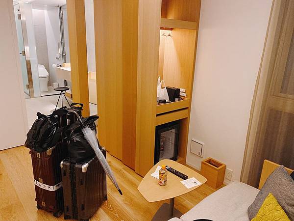 我的房型是豪華雙人房,空間感很不錯,單是雙人床兩邊都留有餘地,小型的客廳都還有空間就蠻不賴,而且你應該有看到非常難得在東京飯店看到這樣全木的地板設計,相當具日式感,同時也都很能聞得到木頭香。