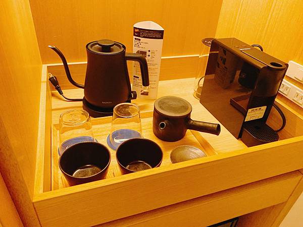 我比較喜歡的是它的茶具,相當具質感,就連快煮壺都是選用BALMUDA,就是在一個小小的細節上,都很為飯店房間品味加分。