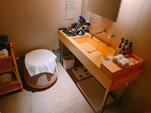 包括同樣在湯屋內部,盥洗的部分設計也完全不馬虎,吹風機都還是Dyson的。