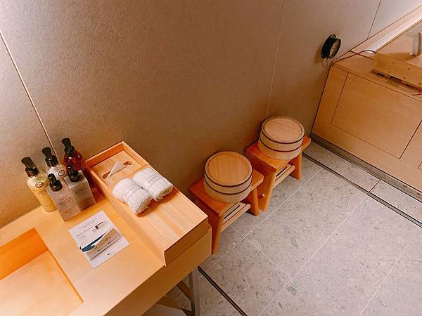 我的最大訂這間飯店的動機來了!就是這檜木浴缸~~~~~!真的太讓人高潮了!在東京住過這麼多飯店,還真沒看過這樣的檜木浴缸,重點是都還聞得到檜木香是不是很療癒!