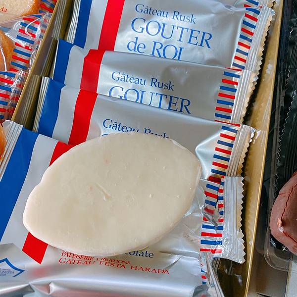 首先,還是這我自己最愛的就是這傳說中的最招牌的原味Gateau Rusk Gouter de roi !其實就有點像法國麵包切片,撒上糖粉、塗抹點奶油,然後烘烤這樣,就是最簡單的美味,其實有點類似我們台灣團購夜很瘋的吐司條,不過Gateau Rusk Gouter de roi 是比較講究和精緻些,吃起來同樣涮嘴,但卻是很甜而不膩的口感,會讓人一片一片想要回味,我真的超級愛。