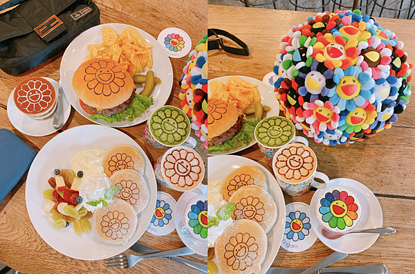 咖啡是絕對要點的!除了上面有經典的小花拉花外,杯子更是村上隆啊超可愛!