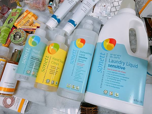 另外像是洗衣精也好用,就是比較純粹成分的自然洗淨,我不知道你們會不會有時候穿了衣服,但身體有些過敏或紅疹,有時候可能就是洗衣精殘留的問題,後來我都換成這Sonett也改善很多了。
