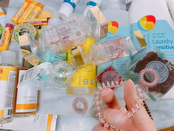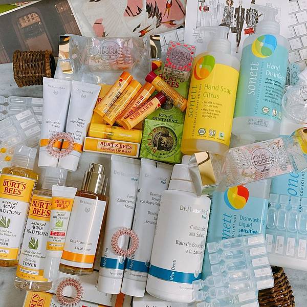 然後我一起整理我之前透過好幾次的PH平珩國際特賣入手的幾個我覺得很重點必買的商品,包括BURT'S BEES紫草膏、護唇膏、清痘夫抗痘系列;德國世家的漱口水和牙膏、律動調理液、面膜、日霜、律動甘露;Not Just A*舒芙蕾蒟蒻海綿;Sonett洗衣精、洗碗精、洗手液、乾洗手,甚至是今年一整個爆紅的invisibobble神奇魔髮圈等重點心得如下: