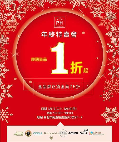 可以說今年年底最後一次,非常適合愛美又喜歡質感,同時追求有機、對環境、身體都是最友善,同時一直都無敵有誠意,很多網友一直在敲我的官方代理包括蜜蜂爺爺BURT'S BEES、頂級植萃保養Dr.Hauschka德國世家、美國專業有機成分防曬品牌COOLA、親民樸實髮品Avalon,甚至是連水壺mizu、德國有機清潔用品的Sonett等都有的PH平珩國際最低1折起,根本是大創價一堆只要49元的年終特賣會終於要來啦!
