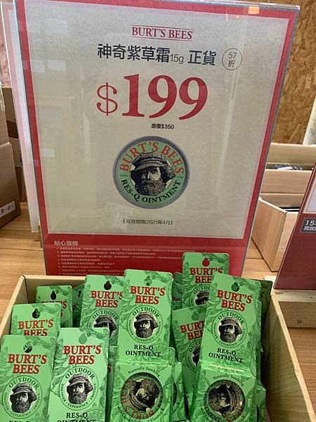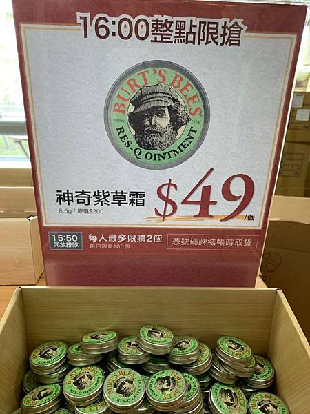 有去特賣會的話可以順手買,每天都有的單一特價,居家必備的紫草膏一罐才49加減買,反正可以用很久很久,這個根本也是許多人家裡、化妝包的常備品!就是那種從小聽到大的紫草膏、紫草霜,只要皮膚如果有些不舒服,擦了有時可以舒緩(但效果因人而異),一整個快跟小護士有同樣的存在重要性的burt's bees 神奇紫草霜,就備一罐在家裡也是以備不時之需。