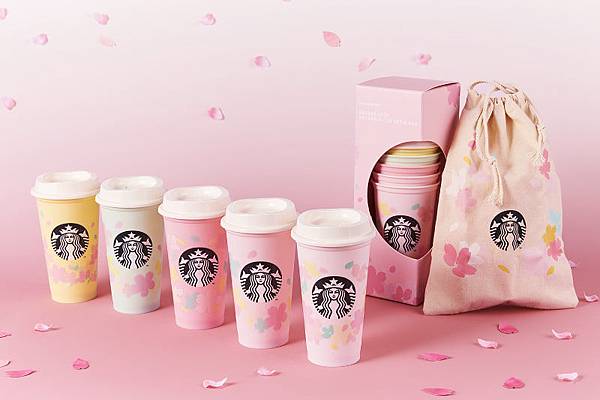 也有一式五入的可重複使用的櫻花隨行杯,一組2800日圓,2/15販售。