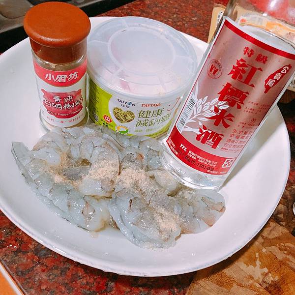 為了讓你的蝦肉可以更鮮更美味,剛剛已經剝好的蝦,以及已經去好的蝦腸等...,這時候我在煮之前,會先撒一點胡椒粉、鹽巴、甚至是米酒讓其鞣製、醃一下,如此一來,你屆時在煮蝦的時候,蝦肉會更加的美味。