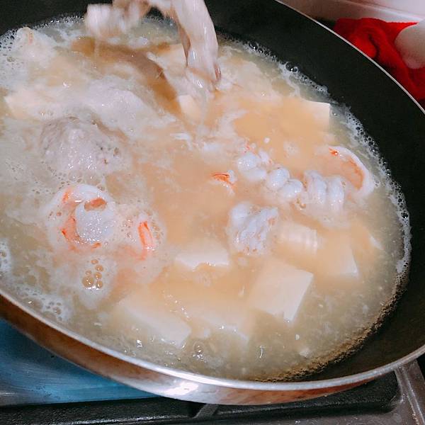 同時間,你可以邊煮豆腐,準備主湯,但這裡的水不要太多,因為湯的水會用剛剛另一鍋的蝦頭湯加入。