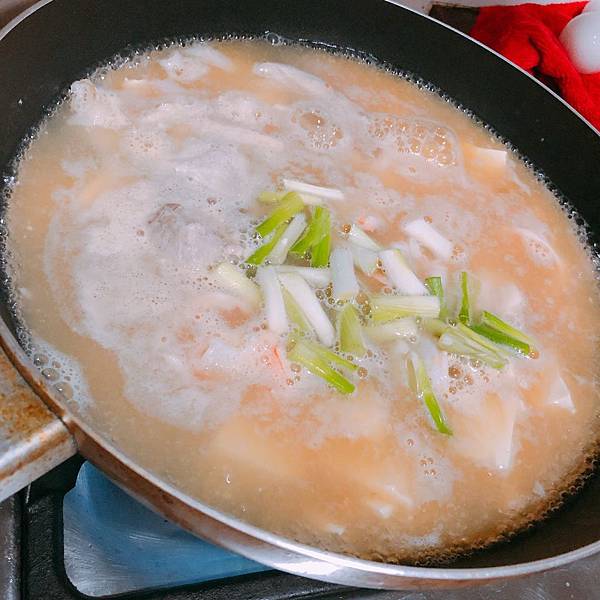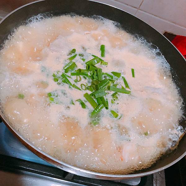 別忘了再加些青蔥,增加一點蔬菜味,以提升整個湯頭的清新感。