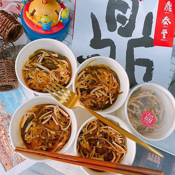 就這,通常這種涼拌菜,會建議要吃就一次吃完,不要筷子吃過又去夾,吃不完又冰冰箱,容易壞,你也不一定要這樣一盒一盒買,鼎泰豐也可以幫看要幾份,全都幫你裝一起,只不過回家自己吃的時候,在分裝上,要避免污染,或者是就是最好一次食用完畢比較好!