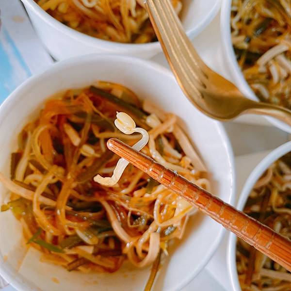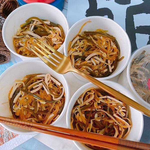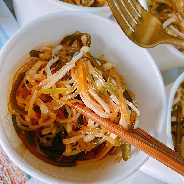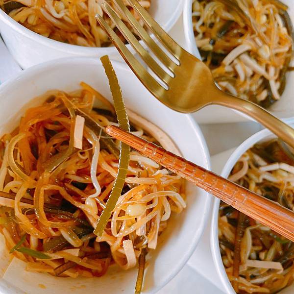 做起來應該有放白醋、醬油,甚至是麻油這樣,有一點甜度我估計是有放糖,但我自己抓不著比例,自己做就是很難做出很滿意的味道,頂多就是涼拌的小菜這樣,而且我跟你說,你不要看這小菜簡單,準備起來也是有夠麻煩!包括豆乾燙熟切絲,海帶也要煮水軟化再切絲,豆芽菜也是要燙熟,冬粉也是要另外燙熟等....哈哈哈哈,真的是沒你想的那麼簡單的步驟有夠多有夠繁複,完全也讓我想起之前我也嘗試自己煮酸辣湯,單是備料也是一大堆,煮起來看似只有一鍋湯,但煮起來也很麻煩,每次想喝酸辣湯,除了鼎泰豐,乾脆就近家裡附近的八方雲集、四海遊龍買一下還比較快比較方便,這小菜的概念也是一樣,真的嘗試自己做過一次後,算了算了直接去鼎泰豐買買比較實在也比較快比較好吃!哈哈哈哈哈,特別是是現在天氣炎熱,沒啥食慾的話,單吃一碗這小菜也開胃好吃又清爽!