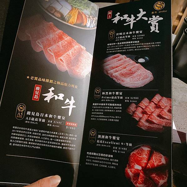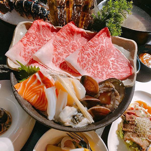 就看你怎麼點,如果你單純就是平常日中午來用餐,可以吃商業午餐,最便宜790起,980內就能吃到完整套餐,但食令shabu除了有時令新鮮海鮮是主要特色外,當然還有各種肉料理,不過食令shabu這家店主打也是各種和牛,最基本款怎麼吃都不太會出錯也好吃的日本鹿兒島和牛套餐是1880元,但強烈建議你加200元升級成照片這張「食令限定海陸套餐」,就很能一次吃到鹿兒島和牛外,還有綜合新鮮海鮮,包括魚片、花枝、蛤蠣、鮮蛤、干貝、鮑魚等...很豐富實在,還有一個菜盤,以及前菜、甜點這樣!