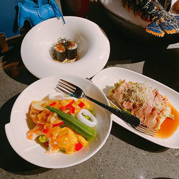 像是有免剝殼的鮮蝦蔬果沙拉、炙燒牛肉沙拉、甚至是還有鮭魚卵海膽壽司等....,選擇多樣多元,而且都會讓你有一種這根本不只是前菜,是一道很有誠意,也蠻有價值的開胃菜!都是3選1,我為了拍照完整,請他們拿出來給我拍,基本上,就像橘色一樣,後面還要煮火鍋還要煮粥留一點胃給火鍋。