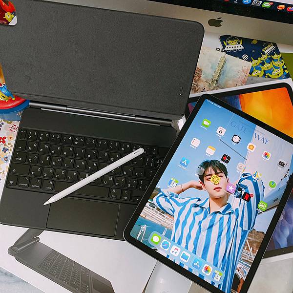 這次一大亮點的巧控鍵盤,真的也是有夠不便宜,但設計的有夠美,同時也就直接是保護套這樣,將整個iPad Pro放上去,就真的很有筆電的既視感,同時真的很像筆電,很好打字之類。
