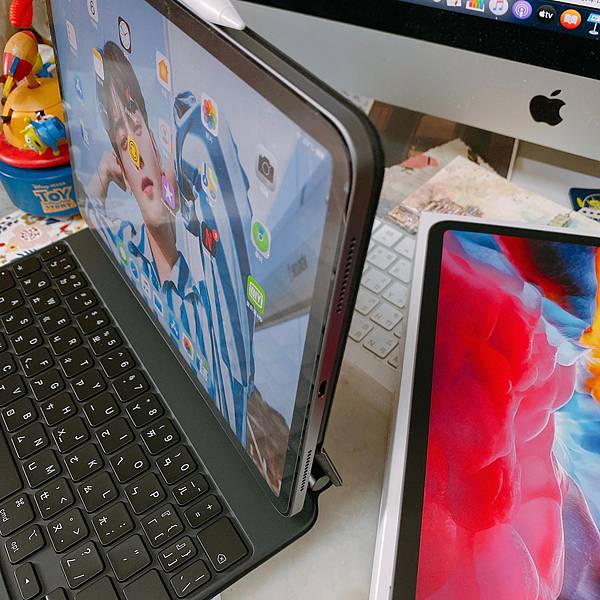 但必須說那懸浮巧控鍵盤真心美,打字靈敏度也好,闔上也剛好就是很完美的保護套,但真的就是......有夠重!我IPad是在店裡試拿過才決定買11吋就好,但搭配鍵盤真的有夠重,很佩服可以一直隨身攜帶的人,但我是像去醫院回診,我知道會很久,就會放包包裡,候診時打開來念日文這樣,比較不會有事沒事帶在身上!太重了~至於,這次Apple強打的取代筆電,你的下一台電腦之類,說真的....我覺得還是很難,哈哈,因為當你還是很需要一直工作時,你還是會需要一台筆電,就像我用一個多月IPad Pro下來,說真的,我出國可能還是會帶筆電,真的比較安心也比較安全感!