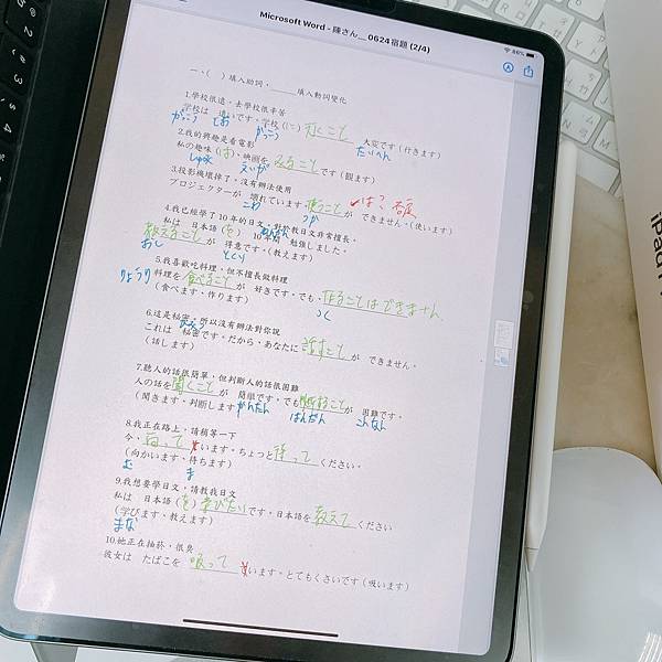 我只能說,我開始覺得好用關鍵是我上完日文家教都會有作業,之前都要去超商印出來手寫,寫好之後拍照給我老師改,真的有點太麻煩,我後來直接打開iPad來直接手寫,還可以有很多不同顏色的筆,寫錯也不用用修正液,筆記啥的真的有夠方便,寫完存擋直接傳給我老師改真的偶夠方便,再加上iPad裡有很多for學習用的app,雖然手機也有,但變成iPad就好像一本書那樣字比較大、螢幕比較大,視覺上可以更清晰也更專注,我覺得是真的很幫助我最近在學日文,我少說背了好幾百個日文單字了吧;再者~就是繪圖真的很好用,那個Apple Pencil靈敏度太強大,真的很強;最後,我自己覺得有點雞肋是因為我家有電視了,我也有買Apple TV,所以其實我就不太會用iPad看劇了,雖然螢幕也是比較大,但用Apple TV接在電視上看更爽,只能說就是可能分給家人看,或是你家裡沒電視,這個用來取代電視會還不錯。